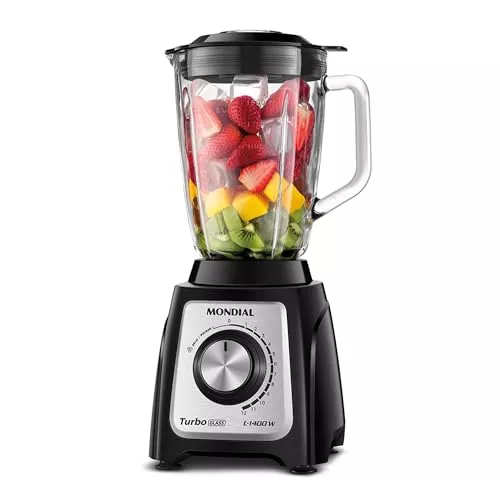 O Mondial Turbo Glass 1400W L-1400-GI é perfeito para quem valoriza design sofisticado e potência para massas densas na cozinha gourmet. A jarra de vidro é resistente a variações de temperatura, sem absorver odores ou manchas, além de ser fácil de limpar.