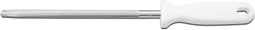 Esta chaira da Brinox é feita com um tipo de aço que não enferruja e é bem forte, com 20 cm de comprimento. Ela tem um cabo branco fácil de limpar que não deixa bactérias grudarem e é confortável de segurar.
